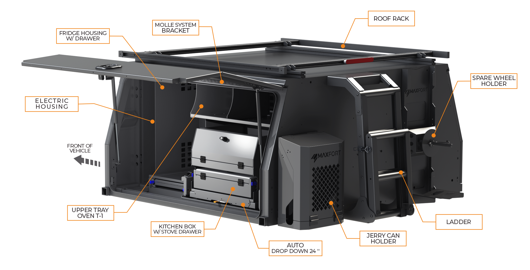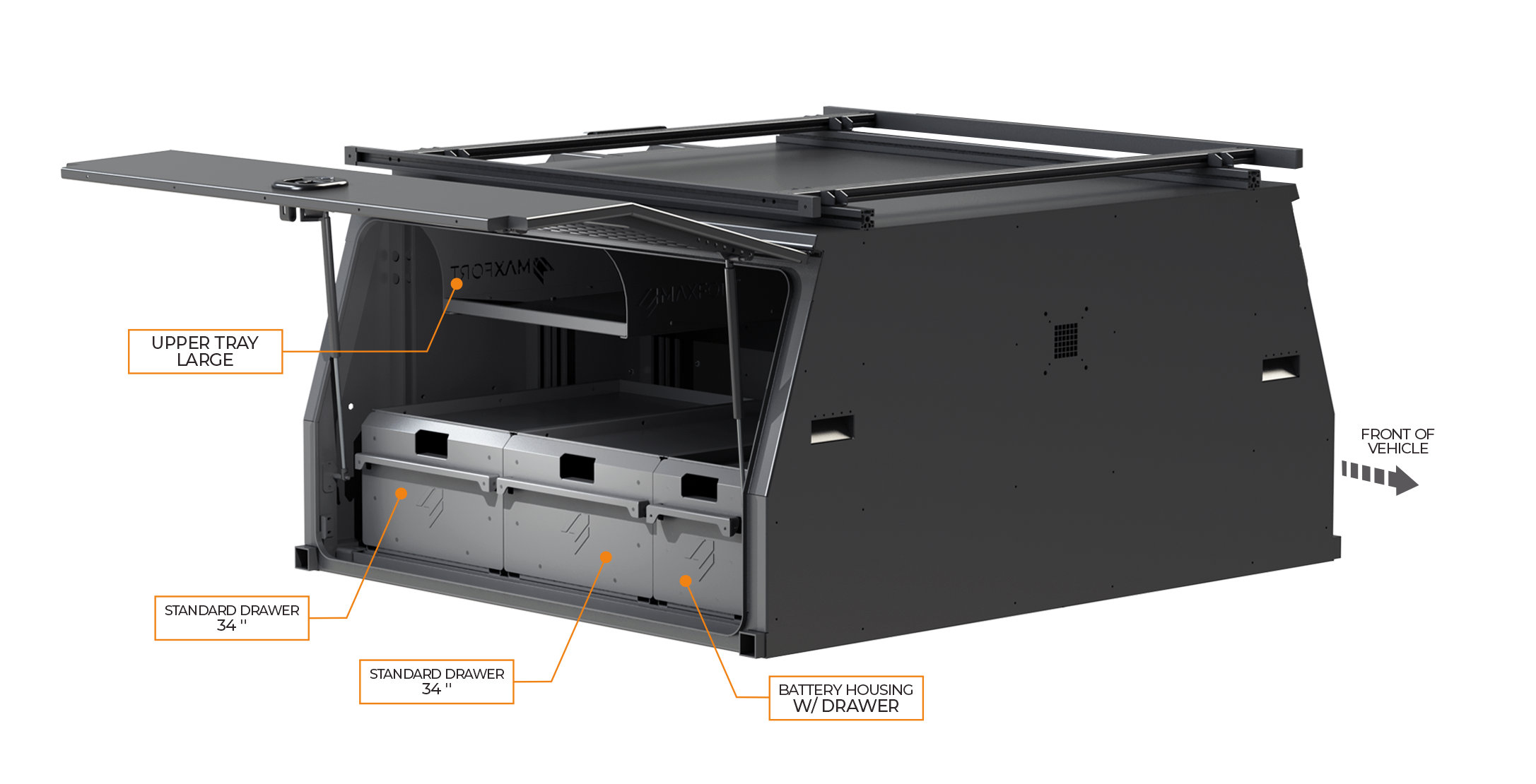 The MAXFORT 600 mini canopy bundle provides a 600mm long canopy for internal storage and an 1800 tray that provides 600mm of open carrying space in the back. Both powder coated in either a matt or gloss finish.