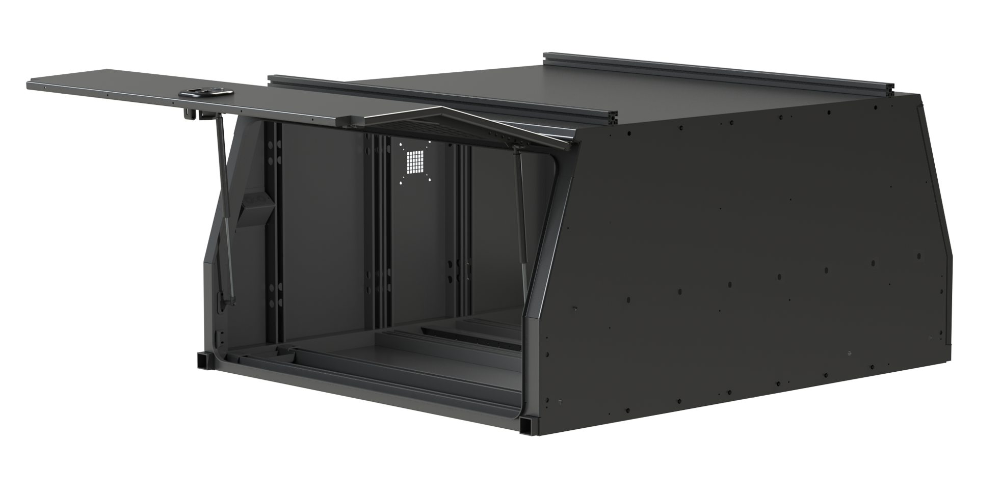 | - | Dual wing doors with piano hinges and gas struts |