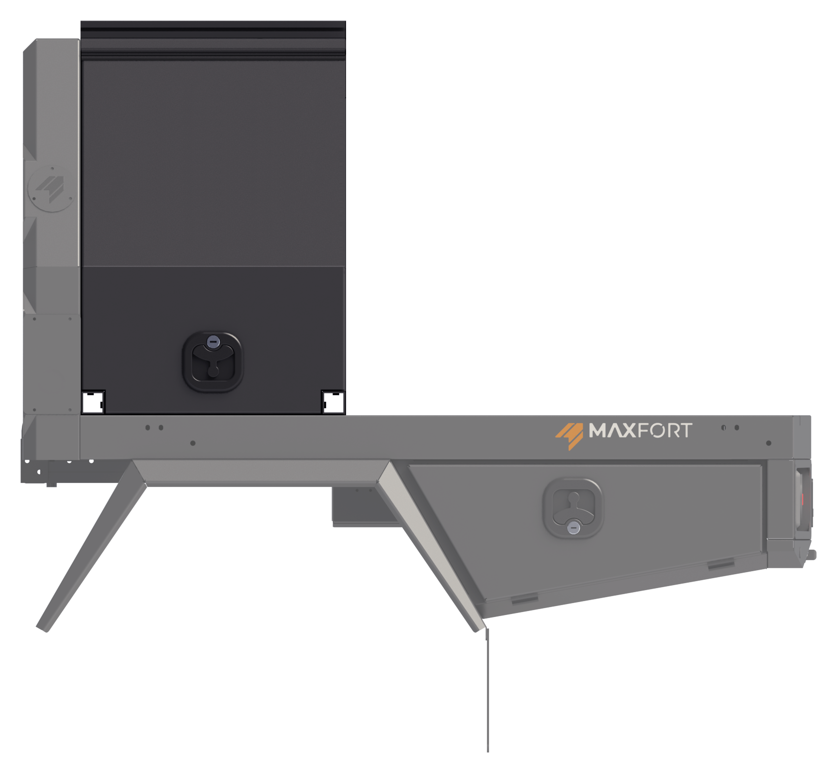 The MAXFORT 600 mini canopy bundle provides a 600mm long canopy for internal storage and an 1800 tray that provides 600mm of open carrying space in the back. Both powder coated in either a matt or gloss finish.