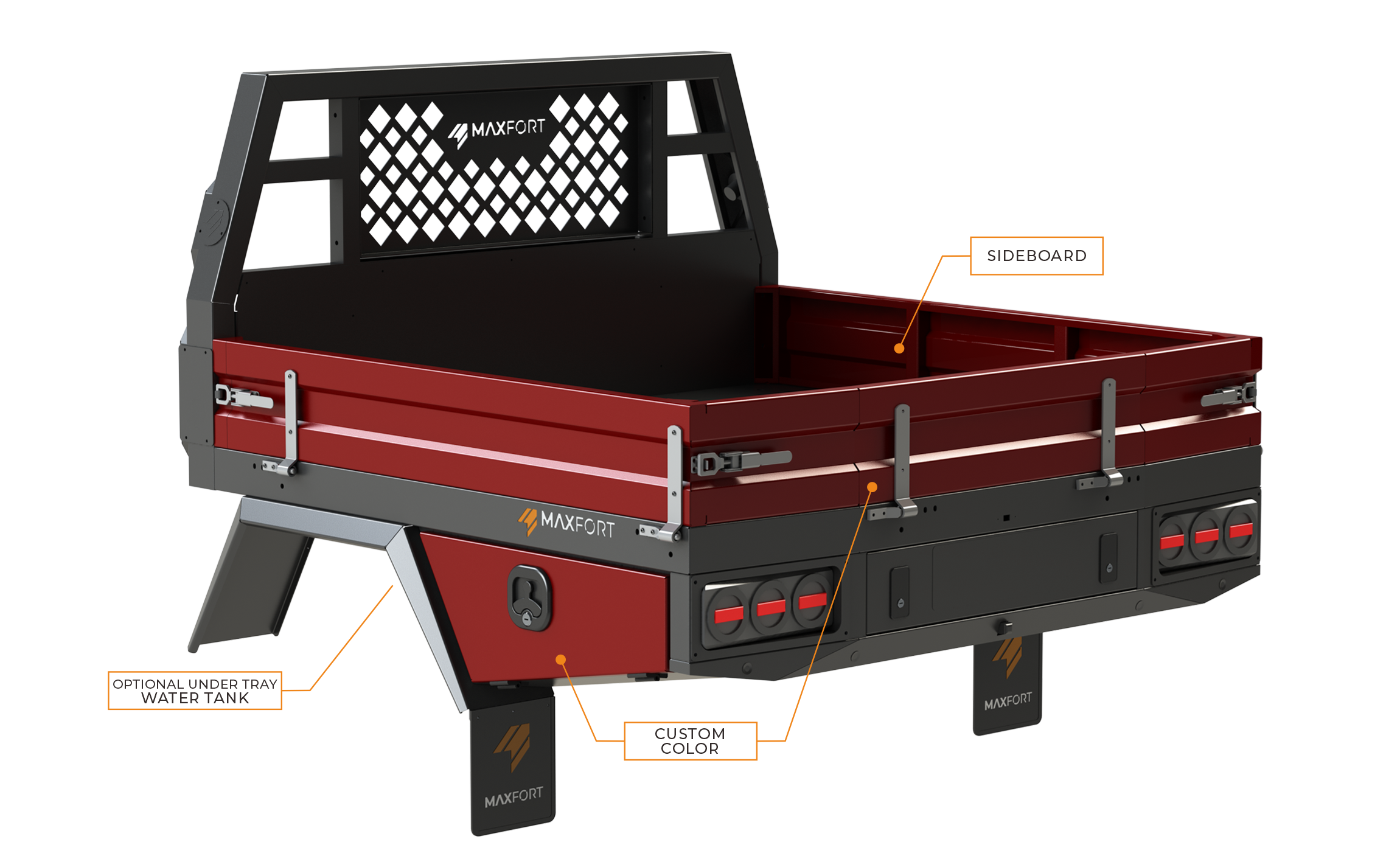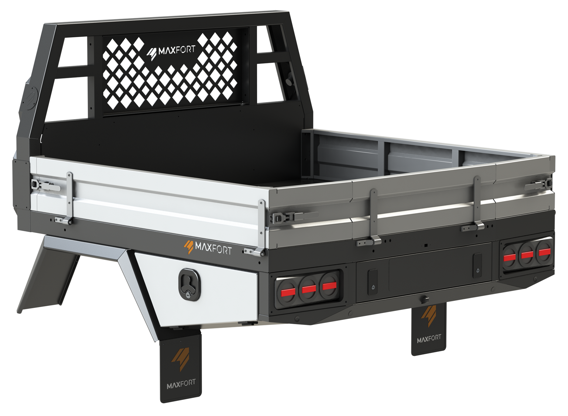 The MAXFORT 600 mini canopy bundle provides a 600mm long canopy for internal storage and an 1800 tray that provides 600mm of open carrying space in the back. Both powder coated in either a matt or gloss finish.